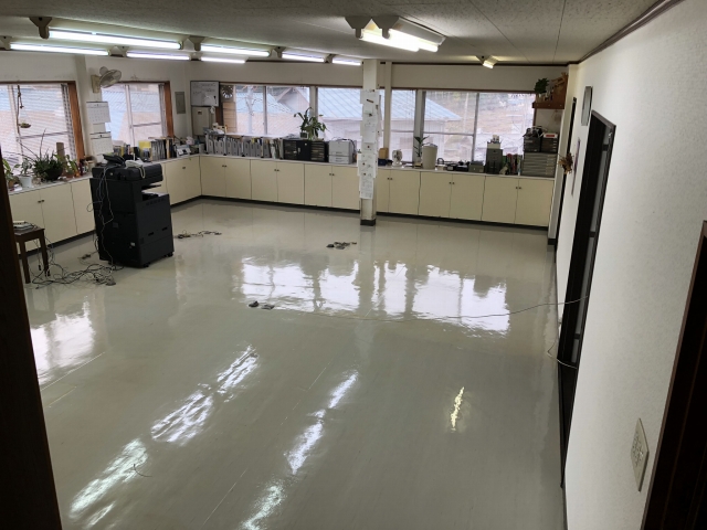 12月の3連休はさーて、事務所の床の剥離してワックスしてもらう事に。前日の夜から、事務所の全ての荷物や机を移動させて、スッキリ綺麗に片付ける事から始まり、床磨きは、朝8時から昼1時で終了。乾かす時間を要して、どうせ床が綺麗になったんだし、模様替えしちゃおう!ってな事で、休み返上で、全ての机を磨きなおし、おニューみたいになるんだに?俺のタバコがヤニヤニ攻撃でまっ茶色に!年末の大掃除よりかなり激しく大掃除。しまったぁ、、、前の事務所を写真撮っておくんだった。それこそ、ビフォーアフターが面白かったのになぁ。。。それから、50万程かけて、棚買ったりテーブルやお客様用ソファなどリニューアル!過ごしやすく、快適に仕事が出来るように大変更!