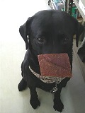 【PIC:リップルおいしそうな肉の板を鼻に乗せたまま我慢の子である】