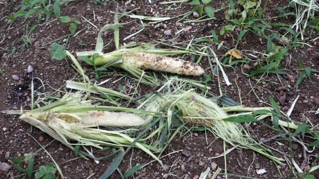 【PIC:何者かに食われてしまったトウモロコシ。もうちょっとで収穫予定だったのにぃー】