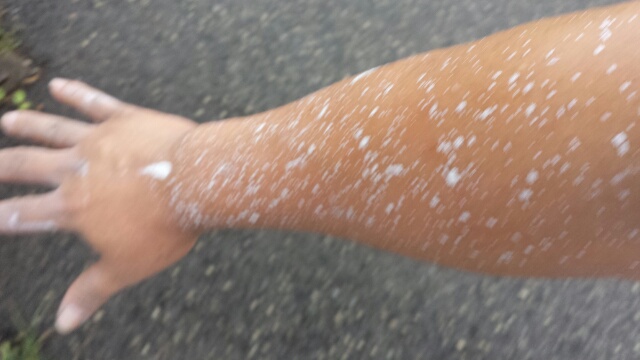 【PIC:アミアミの部分を塗ると、ピチピチ飛びまくってこんな状態に。風呂に入ってもなかなか取れぬ。】
