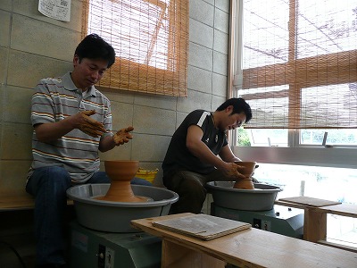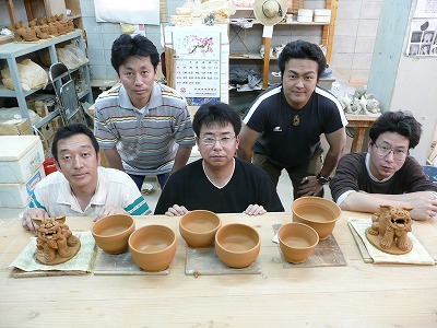 シーサー作りと電動ロクログループに分かれて、俺は初の電動ロクロを楽しむ!これまた大変なんだけど、ごっついおもろい!ゴーストの映画のようなエロさはないが、土がとっても暖かい♪俺は茶碗とうどん鉢を作って3000円!こりゃぁ最高に楽しいアトラクションだべ。