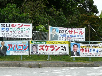 神経使うと腹が減った!ということで、沖縄そばの面白い店に連れて行くのだが、システムが変わって食い放題じゃなくなってるぅー。店員さんはまだデビューできずに一生懸命練習をしてるということだった。ブルーシールのアイスを食って、レンタカー借りて委員長がどうしてもやりたかった国道58号線を意味もなくひたすら走るというスケジュールに付き合う。宜野湾のエロ場行って、海が見たいと進む先には行き止まりの火葬場&お墓に到着。珊瑚ひらったりして、石投げて青春してるメンバーもいる。琉球ガラスを作りたいと、体験王国むら咲むらに来るが、タイムズアップ!近所の残波岬の灯台に登って空港へ向かう。選挙を笑っちゃいけないんだけど、あまりものPRの仕方にみんな笑いが止まらない。ポスター最低2000枚は貼ってるね。