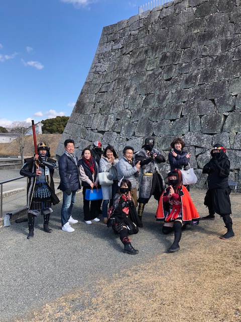 工業組合の交流会の下見として、組合理事長や、愉快なその仲間たち12名と、牡蠣を食いに赤穂へ。その前にちょっち観光しましょう!と言う事で、赤穂城址を見ることに。へぇー、赤穂って何度も来てるけど、城に来るのは初めてだにぃー?とか言いながら歩いてると、忍者らしきコスプレ軍団発見!ん?忍者っぽいけど、カラフルやし、姫路忍者のように赤穂忍者って居たんだっけ?でも、彼らも観光してるっぽいぞ!と、2度目のすれ違いの際に、声をかけてみた。え?うそぉー!そう、伊賀から来られた伊賀忍者集団で、知り合いの黒影さんが居た!プラス、先週お会いした伊賀の忍者屋さんも一緒に来てらした!サブイボやん♪めちゃ感動の再会ヽ(^o^)丿牡蠣よりも、この再会のほうが嬉しくて嬉しくて♪♪♪