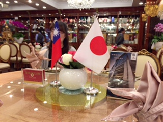 【PIC:テーブルには、日本と台湾の国旗を置いてくれるおもてなし。すごいぞ、このレストラン!】