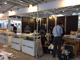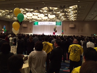 さぁてと、今日は搬入日。外は真夏の陽気で汗がもの凄い。予定していた時間に行くとやっぱり準備が出来てなかった。仕方なく、外で時間つぶしもしながら、タイムロス。これはちょっと厳しいねぇ。。。バスのお迎えを早めてしまってるのが、結構厳しい。バスの運ちゃんとは連絡取れないんだもんなぁ?ってなわけで、急いで穴あけ頑張るぅ。そう、この穴があかない!ってわからないですね?穴のあいたボードの上に黒い紙を貼ってデコレートしてあるので、その紙をぶち破かねば製品を吊るす金具が入らないという状態。はい。かなり途中だが、タイムズアップ!俺は昨日に引き続き拉致られ、会社へ。うん、今回は結構面白そうな話も出来た♪みんなはマッサージ行ったり、美味しいもん食ったりしてたみたい。いいなぁーっ!今夜は主催者側の接待で、ご飯を食いに行く。決起会だに?2色鍋なのだが、ダメだねぇー?ホテルの見た目豪華な食事はやっぱり美味しくない。うぅーん、もったいないなぁー?おそらく金額は結構してるはず。
