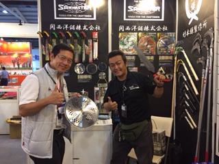あきませんあきません。もう体調サイババ状態で、出発時間にフロントへ下りてくると、みんなが俺の顔見て、無理そうやし、土色の顔やし、クチビル変やし、まだホテルで寝ときぃーや!と。確かにこんな感じで現地で横になれないし、作り笑顔なんか絶対に無理やし、と、お昼まで休ませてもらうことになる。でも、頭痛くてほとんど寝られず、熱のせいで、寒いのに汗だくだったし、薬も全く効かないので、休ませてもらうことに。でも今日は最終日。色々と売って欲しい!ってお客様もいらしたので、申し訳ないと思いながら、でも先輩たちが電話くれて、売ってくれてた♪感謝っす。結局、別の先輩もホテルに待機してらして、昼、一緒に会場まで連れてってもらえることに。台湾企業もうちの製品みたいって、ドリンク持ってきてくれたりしたんだけど、体力の限界で楽しい話をすることができなかった。ゴメンなさいっ!そして中壢JC仲間が、ブースへ新幹線乗って飛んできてくれた。日本の華道鋏や、建築金物を買ってきてー!とリクエスト貰ってたので、よかったぁー渡すことができて♪今夜の食事も誘ってくれたんだけど、絶対俺飯食えないし飲めない、ってお断りして。。。もう残念すぎるぅ。。。ごめんよぉー!Bryan!